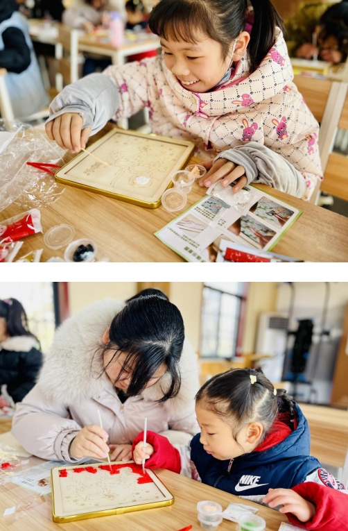 在孩子們和家長的共同努力下,一幅幅用巧手定格的秋日美景紙漿畫展現(xiàn)在大家眼前,孩子們臉上洋溢著燦爛的笑容。