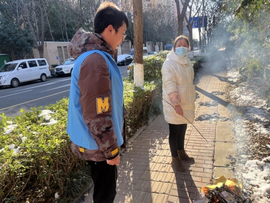 行動中,社區(qū)安全員來到花港北路土城頭進行巡查。首先與正在準備祭祀和已經開始祭祀的群眾溝通交流,向群眾普及森林防火知識,提醒群眾在祭祀結束后仔細檢查灰燼堆,避免有火星存留,造成森林火災隱患。隨后用枯樹枝認真檢查了已經祭祀完畢的灰燼堆,經過兩個多小時的巡查,有效降低了森林火災的風險,消除安全隱患。