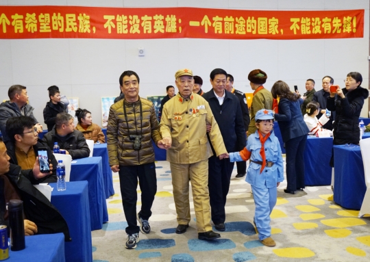 當(dāng)崔志揚、芮學(xué)賢、袁友卿、朱萬儲等6位老兵被簇?fù)碇呱现飨_時,當(dāng)“老兵歸隊”“敬禮”等一個個震撼心靈的聲音響起時,整個會議大廳掌聲雷動,200多名參會代表紛紛起立,向英雄的老兵行注目禮。12月23日下午,地處革命老區(qū)茅山的句容假日酒店里溫暖如春,句容市關(guān)愛退役軍人協(xié)會成立慶典現(xiàn)場高潮迭起、氣氛熱烈。