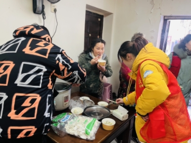 冬至節(jié)氣已至,近日,南塑社區(qū)聯(lián)合共建單位邁皋橋初級(jí)中學(xué),開(kāi)展了“文明有‘寧’暖民心 ”煮餃子送溫暖活動(dòng)?;顒?dòng)當(dāng)天上午,社區(qū)工作人員、邁皋橋初級(jí)中學(xué)師生來(lái)到南塑新村小區(qū),大家戴上手套、系上圍裙,在長(zhǎng)桌前各司其職、分工合作,打水、燒水、下餃子、盛餃子……現(xiàn)場(chǎng)井然有序。社區(qū)工作人員將一盤(pán)盤(pán)熱氣騰騰的餃子送到小區(qū)老年居民面前,大家邊吃邊聊,滿是歡聲笑語(yǔ),其樂(lè)融融。張奶奶笑呵呵地說(shuō):“社區(qū)黨委真貼心,每個(gè)傳統(tǒng)節(jié)日都會(huì)組織暖心的活動(dòng),給你們點(diǎn)贊。”隨后,社區(qū)工作人員與師生一起打包好餃子,送進(jìn)轄區(qū)內(nèi)行動(dòng)不便的老人家中,學(xué)生們?yōu)榫用翊繁场⒊?、表演?jié)目,叮囑老人注意保暖和出行安全,讓他們?cè)谶@寒冷冬日感受社區(qū)大家庭的溫暖。
