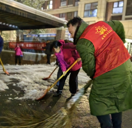 12月18日,南京迎來(lái)入冬以來(lái)首場(chǎng)降雪,大雪給城市帶來(lái)了美景,也對(duì)居民出行和生活帶來(lái)不便,社區(qū)居委會(huì)副主任占崇勇帶領(lǐng)大家提前做好掃雪準(zhǔn)備,他把準(zhǔn)備的物資分發(fā)給各個(gè)小區(qū)。下班后,發(fā)動(dòng)社區(qū)和物業(yè)工作人員、志愿者們共同清理積雪,大家不顧天寒路滑,干勁十足,有的手持鐵鍬鏟雪,有的手拿掃把清雪、有的在小區(qū)出入口鋪設(shè)草墊,齊心協(xié)力為居民出行安全“保駕護(hù)航”。因?yàn)檠┝刻螅袃煽脴?shù)木因?yàn)榉e雪過(guò)重存在安全隱患,占崇勇發(fā)現(xiàn)后立即聯(lián)系上級(jí)部門(mén)和附近企業(yè)共同砍枝消險(xiǎn),掃雪工作一直持續(xù)到凌晨,寒冷的天氣阻擋不了大伙兒的熱情,忙碌的身影形成了白雪中靚麗的風(fēng)景線。凌晨五點(diǎn),大家又在他的帶領(lǐng)下拿著鏟子來(lái)到路邊,此時(shí),道路上的雪已被踩壓或結(jié)冰,大家一鍬鍬、一點(diǎn)點(diǎn)、一段段,用真情和真心為居民清掃出一條條“平安路”“溫暖路”。