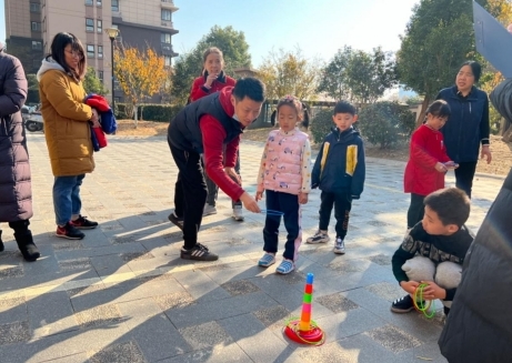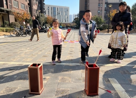 活動(dòng)現(xiàn)場(chǎng),參與者們熱情高漲,孩子們更是興奮不已。由職工志愿者介紹本次活動(dòng)共分為四個(gè)環(huán)節(jié):投壺、套圈、三子棋、珠行萬里。在投壺環(huán)節(jié),每組家庭成員需要在最短時(shí)間內(nèi)完成投壺,這是一種禮節(jié)性的游戲,通過投矢的方式?jīng)Q定勝負(fù)。套圈環(huán)節(jié),是以每組家庭成員最短時(shí)間內(nèi)完成最多套圈數(shù)量衡量,游戲不僅鍛煉了大人、孩子們的身體平衡能力,還大大激發(fā)了孩子們對(duì)游戲的趣味挑戰(zhàn)和探索欲,促進(jìn)他們的身心發(fā)展。