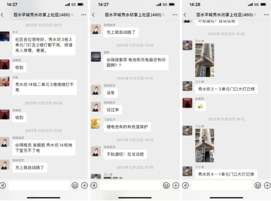 近日,棲霞區(qū)馬群街道百水芊城“掌上云”微信群陸續(xù)接到居民訴求信息,秀水坊部分單元門頭燈壞掉了,希望能及時(shí)幫忙維修,解決夜間出行的安全隱患發(fā)生。