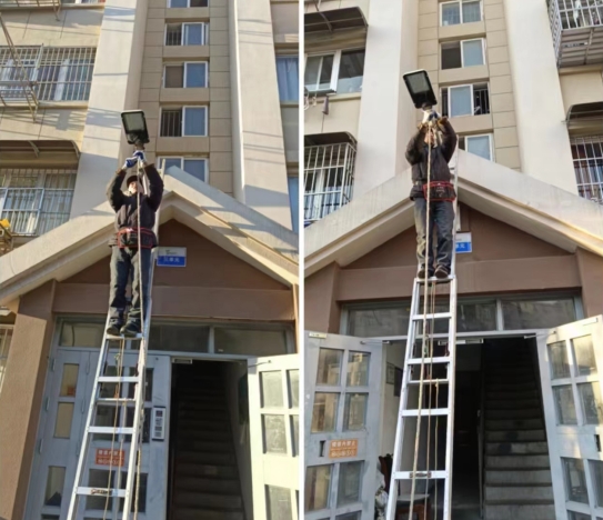 百水芊城社區(qū)網(wǎng)格員在“掌上云”微信群看到訴求后立刻回復(fù)居民,考慮到秀水坊居住的大多為老年人,如果沒有單元門頭燈,晚上出行會存在很大的安全隱患,隨后社區(qū)網(wǎng)格員立即聯(lián)系了專業(yè)電工物業(yè)師傅帶上梯子和維修工具,對損壞的門頭燈進(jìn)行了更換。物業(yè)師傅將修好的圖片發(fā)至微信群中,及時(shí)有效的處理得到居民的一致認(rèn)可。