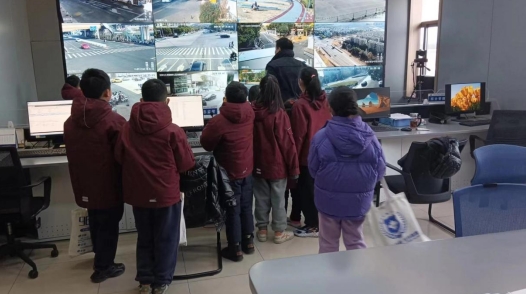 在接警大廳,大家的目光紛紛被眼前的大屏幕所吸引,在接警員的引導(dǎo)下,同學(xué)們了解了遠程指揮調(diào)度出警,在滿足孩子們好奇心的同時,也向他們宣傳安全防范知識。