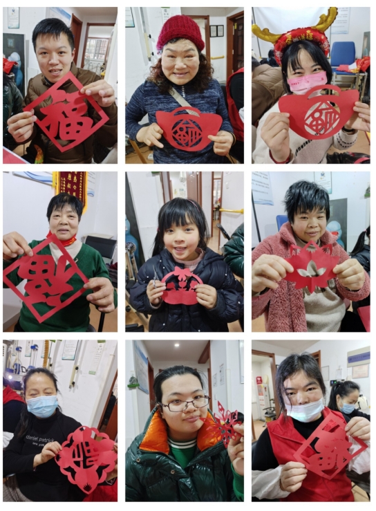 “小孩小孩你別饞,過了臘八就是年。”德輝殘疾人之家為了讓殘疾人更好的迎接新年的到來,還特地準備了一系列新春的剪紙,以剪代筆,紙上生花。剪紙作為一種鏤空藝術(shù),它能給人以視覺上以透空的感覺和藝術(shù)享受。