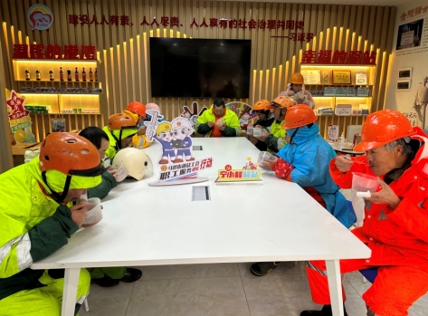 在社區(qū)愛心驛站里,也為新業(yè)態(tài)勞動者們準(zhǔn)備了臘八粥,他們一邊喝著粥一邊聊著天,臉上洋溢著笑容。快遞員趙姐說道:“感謝社區(qū)惦記著我們,在外忙活一上午,喝到這口熱乎的臘八粥,真是太溫暖了。”