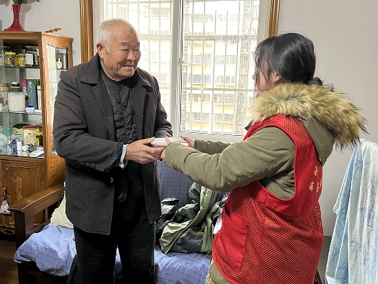 1月18日,南京市棲霞區(qū)馬群街道潤康苑社區(qū)開展“濃情臘八 關(guān)愛老兵”活動(dòng),為退役老兵派送臘八粥,送去冬日關(guān)懷和溫暖。