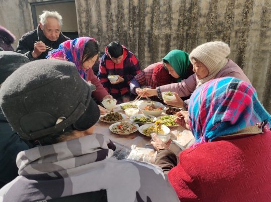本次春節(jié)團圓飯在獨居老人韓呈蘭奶奶家中開展,一大早韓奶奶熱情地張羅著,村民志愿者手腳麻利地起鍋燒油,盡顯大廚風范,由新加入志愿者隊伍的候翠蘭、朱應蘭從旁協(xié)助,并帶著社工忙前忙后布置一切,大家互幫互助共同做一頓愛心團圓飯,促進老人鄰里齊聚一堂,提前感受過年氣氛,共享春節(jié)歡樂。