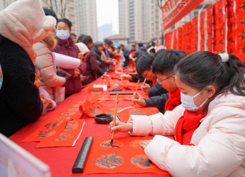 “啄木鳥(niǎo)”是金陵驛社區(qū)為提高青少年科學(xué)文化素質(zhì)和社會(huì)綜合實(shí)踐能力而重點(diǎn)打造的一項(xiàng)公益品牌活動(dòng)。本場(chǎng)新春送?;顒?dòng)提前招募了小小書(shū)法愛(ài)好者,十位小啄木鳥(niǎo)現(xiàn)場(chǎng)寫(xiě)福送春聯(lián),將新春的祝福濃縮于筆端,為金陵驛社區(qū)居民送去美好的新春祝福和對(duì)未來(lái)的良好期許。