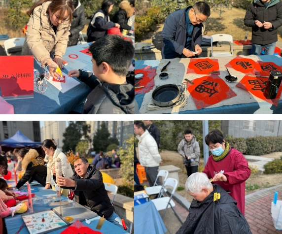 此外,為了讓大家感受到濃厚的節(jié)日氛圍和家的溫暖,在這里可以嘗試寫春聯(lián)送福字、體驗(yàn)新年窗花剪紙、手工燈籠制作等活動(dòng),還可以在網(wǎng)紅小龍人打卡點(diǎn)留下你的美好瞬間。同時(shí),為了滿足大家的口腹之欲,上坊社區(qū)還提供了龍年手工包、3D立體拼圖、甜品爆米花、非遺糖畫、套圈等美食。還有暖心理發(fā)服務(wù),讓你在新的一年從頭開始,煥發(fā)新的活力。在這里,每個(gè)人都能找到自己喜歡的活動(dòng),盡情享受這場“家門口”的文化盛宴,讓大家感受到社區(qū)的溫暖和文化的魅力,共同迎接一個(gè)美好的新年。