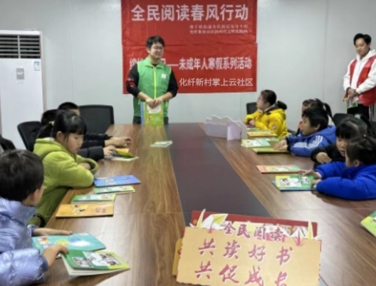 春節(jié)臨近,南京市棲霞區(qū)燕子磯街道化纖新村掌上云社區(qū)聯(lián)合新時(shí)代文明實(shí)踐站在寒假來(lái)臨之際,為轄區(qū)未成年人開(kāi)展“全民閱讀春風(fēng)行動(dòng)”親子家庭共讀活動(dòng)。