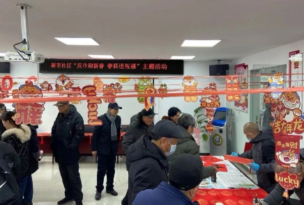 春聯(lián)反詐作用大,共護(hù)平安新春。2月4日,社區(qū)開展“反詐迎新春,祝福送萬家”主題活動(dòng),邀請(qǐng)通州區(qū)退休老干部書法家協(xié)會(huì)的書法家們?yōu)檩爡^(qū)居民寫春聯(lián)、福字,現(xiàn)場書法家們將反詐宣傳標(biāo)語寫在對(duì)聯(lián)上送給居民。
