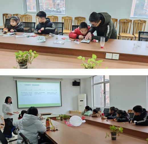 活動(dòng)開始,社工通過PPT向孩子們介紹了從無廢城市走向無廢社會(huì)的提出背景和重大意義。“無廢校園”是建立在“無廢城市”概念基礎(chǔ)上,是一種先進(jìn)的校園理念,通過師生自覺踐行資源節(jié)約、環(huán)境友好、簡約適度、綠色低碳的生態(tài)文明生活行為習(xí)慣,在校園中達(dá)成廢棄物的“可見、可減、可用、可消”,最終實(shí)現(xiàn)整個(gè)校園廢物產(chǎn)生量減少、資源充分利用、安全處置的目標(biāo)。接下來,社工帶領(lǐng)孩子們動(dòng)手利用空的礦泉水瓶制作小吸塵器,利用紙杯制作小臺(tái)燈,積極倡導(dǎo)“無廢”理念,培養(yǎng)孩子們自覺投入到“無廢學(xué)校”建設(shè)的宣傳和實(shí)踐中去。