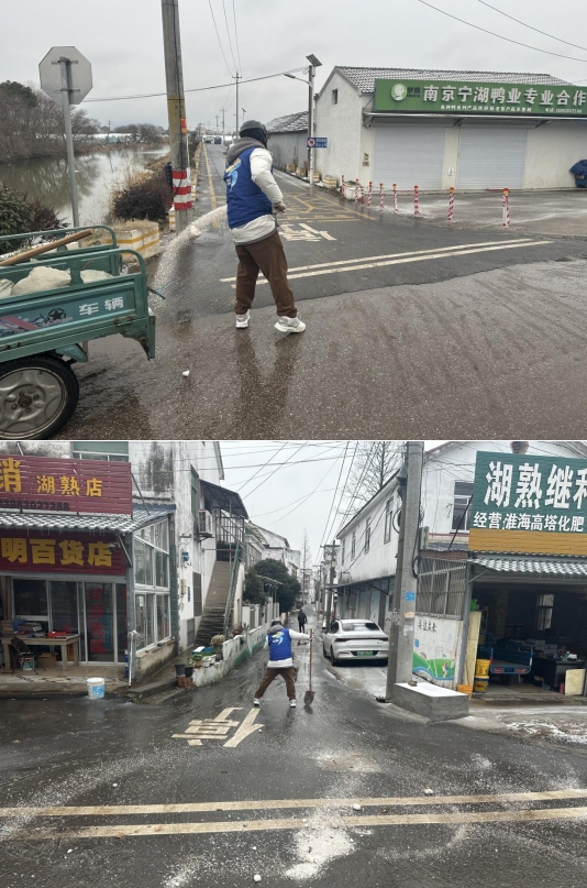 近日,南京市迎來龍年第一場大雪。為確保社區(qū)居民的出行安全,減少因路面結(jié)冰而引發(fā)的安全隱患,南京市江寧區(qū)湖熟街道河南社區(qū)008號網(wǎng)格員們迅速行動,分別在笪家橋、薛家莊以及前后石交接路口進(jìn)行撒鹽除冰工作。