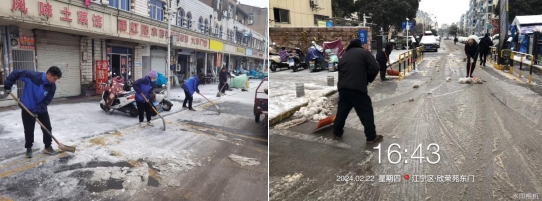掃雪除冰,志愿先行。大家迅速投入到清雪一線,利用雪鏟、鐵鍬、融雪劑等對轄區(qū)內(nèi)主干道、急彎、陡坡、易積水結(jié)冰路段、事故多發(fā)路段進(jìn)行“鏟雪除冰行動”,明確分工,手持鐵鍬、掃帚,你掃我鏟,相互配合,干得熱火朝天。經(jīng)過大家通力合作,為轄區(qū)群眾清掃出了一條“平安路”“溫暖路”,用“小行動”保障“大民生”,踐行了全心全意為人民服務(wù)的宗旨,極大程度解決了嚴(yán)寒天氣群眾“出行難”的問題,切實(shí)保障居民生活工作的正常進(jìn)行。