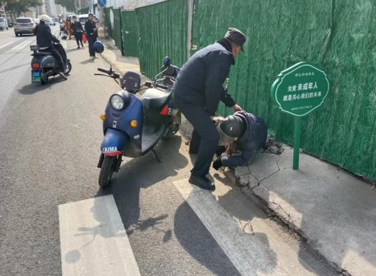 市民騎車(chē)摔倒 江寧街道城管暖心相助