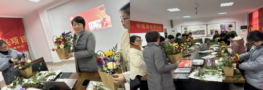 隨后,花藝?yán)蠋煄ьI(lǐng)大家一起插花,并傳授了很多插花小技巧。大家躍躍欲試,在老師的指導(dǎo)下,紛紛動(dòng)起手來,將一朵朵鮮花巧妙地搭配在一起,制作出美麗的花束。