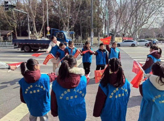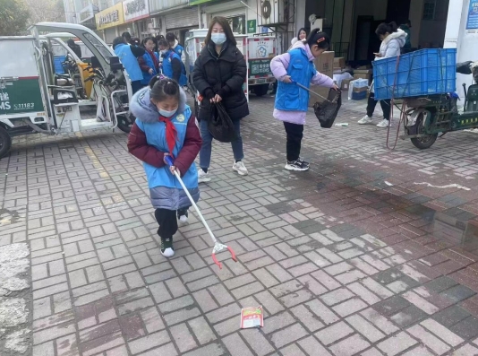 活動(dòng)當(dāng)天,少先隊(duì)員一早便到達(dá)了集合地點(diǎn),在社區(qū)工作人員和志愿者的引導(dǎo)下兵分兩路,一隊(duì)帶著毛巾、水桶、拖把等清潔用具走進(jìn)社區(qū)居民樓,化身“清潔小達(dá)人”,圍繞小區(qū)開(kāi)展環(huán)境衛(wèi)生大掃除;另一隊(duì)少先隊(duì)員則出現(xiàn)在社區(qū)交通路口,和交警叔叔一起,參與交通秩序維護(hù),成為“文明交通代言人”。早春的清晨寒意猶在,可抵不住少先隊(duì)員們參與活動(dòng)的熱情,無(wú)論被分配在哪個(gè)崗位,他們個(gè)個(gè)精神抖擻,積極勞動(dòng),充分發(fā)揚(yáng)了不怕臟、不怕累、不怕辛苦的奉獻(xiàn)和志愿精神。