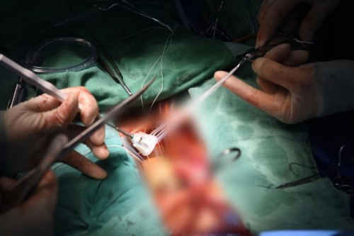 70多歲的王奶奶(化名)四年來一直有胸悶、心悸的毛病,近期突感癥狀加重,渾身不適,隨即前來該院心內(nèi)科就診。經(jīng)過心內(nèi)科的心臟彩超檢查,發(fā)現(xiàn)患者左心室及右心房增大,中重度主動脈瓣關(guān)閉不全,中重度三尖瓣關(guān)閉不全,輕中度肺動脈高壓,左室舒張及收縮功能異常。在心內(nèi)科和心胸外科錢軍嶺團(tuán)隊(duì)的會診下,建議行心臟瓣膜置換手術(shù)。