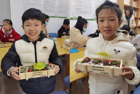 聽講完畢后,進(jìn)入了實踐環(huán)節(jié),老師逐一發(fā)放了種植多肉所需的全套工具和材料。孩子們滿心期待,躍躍欲試,迅速投入到親手種植多肉植物的世界中。他們手持小巧的園藝工具,興趣盎然地按照指導(dǎo)步驟操作,先往種植盆內(nèi)填入適當(dāng)?shù)姆N植土,再將一株株晶瑩剔透多肉小心地移入盆內(nèi),然后填土壓實,最后進(jìn)行裝點,一盆盆各具特色的多肉微景觀便在孩子們手中誕生了。老師全程鼓勵大家積極創(chuàng)新,讓每個孩子都化身為創(chuàng)意滿滿的小小花匠,親手打造屬于自己的綠色天地。