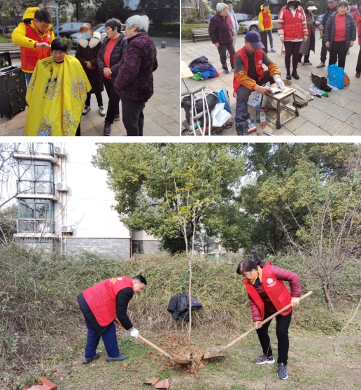 植樹(shù)現(xiàn)場(chǎng),退休黨員們紛紛熱情高漲,一派熱火朝天的景象,揮鍬鏟土、培土圍堰、提水澆灌、扶樹(shù)正苗,合力栽下蜜桔、梔子花等十幾棵樹(shù)苗,為小區(qū)綠化再補(bǔ)新裝。此外還設(shè)有健康義診、義務(wù)理發(fā)、磨刀、反電詐宣傳等攤位,居民絡(luò)繹不絕。在健康義診區(qū),醫(yī)生們認(rèn)真問(wèn)診,耐心解答,為居民提供了科學(xué)的健康指導(dǎo);磨刀、理發(fā)等便民服務(wù)攤位也是“生意火爆”,居民將自家用鈍的菜刀拿出來(lái),不一會(huì)兒,刀具被磨得光亮如新;義剪師傅為居民系好圍布,按照老人的期望進(jìn)行“私人訂制”,經(jīng)過(guò)一番仔細(xì)修剪,頭發(fā)都變得十分干凈整齊。