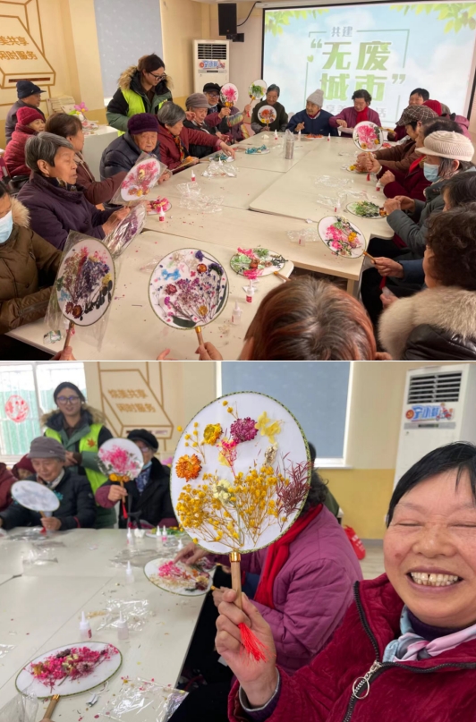 在活動中,社區(qū)以《“無廢”讓生活更美好》為主題,結(jié)合實際生活,深入淺出地闡述了無廢城市的概念以及建設的必要性和重要性。讓居民認識到,“無廢城市”并非不產(chǎn)生固體廢物,而是以創(chuàng)新、協(xié)調(diào)、綠色、開放、共享的新發(fā)展理念為引領,倡導居民從生活中點點滴滴入手,積極踐行“光盤行動”“綠色出行”“綠色建筑”“再生資源回收利用”“減塑禁塑”等綠色環(huán)保低碳生活方式。同時,工作人員通過圖文并茂的分享讓在場的居民對無廢城市理念有了更深入的了解。宣講之后社區(qū)工作人員還組織居民朋友們現(xiàn)場利用廢舊的枯木樹葉,廢報紙、木頭等材料制作了團扇,讓廢物再利用讓,環(huán)保理念深入人心。