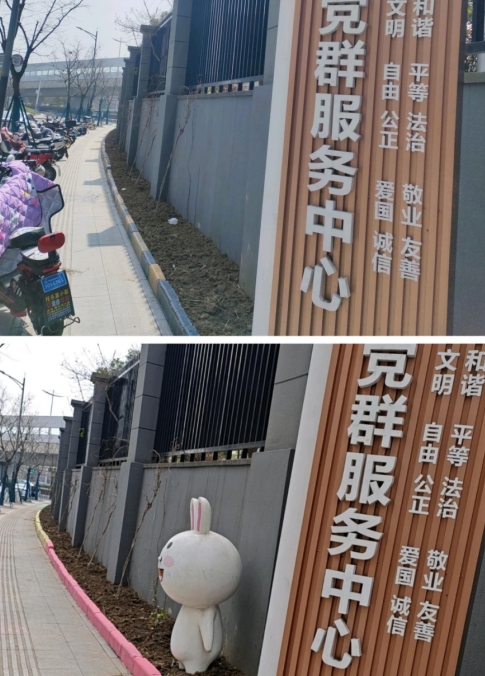 最后,特別感謝3位社區(qū)志愿者爺爺,為了讓護欄更加牢固,避免旁邊停車區(qū)的電動自行車倒車時誤入綠化帶,他們從附近拖回來將近20車腐土,將原本只到護欄一半高的泥土挖松、填平。