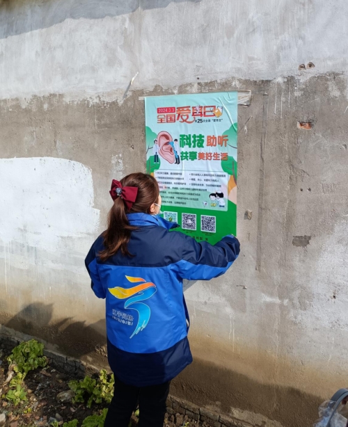 和進(jìn)社區(qū)001網(wǎng)格員方向霖與004網(wǎng)格員李蓮迅速行動(dòng),深入社區(qū)下轄村落,展開了緊張而有序的海報(bào)張貼和宣傳頁(yè)發(fā)放工作。他們不僅將聽力健康知識(shí)以直觀、生動(dòng)的形式傳遞給每一位居民,更是耐心地向大家普及相關(guān)知識(shí):“聽力障礙,就是我們常說(shuō)的耳聾,它可能由于各種原因?qū)е氯藗兟犛X困難,甚至無(wú)法聽到或聽清楚周圍的聲音和言語(yǔ)。”