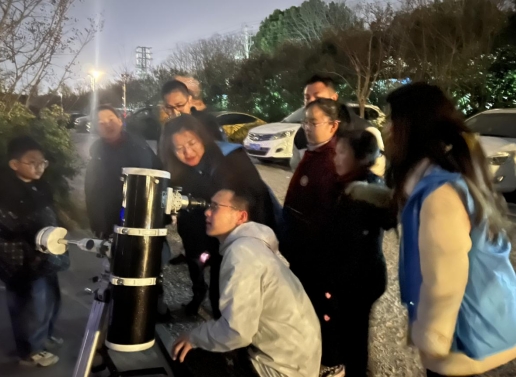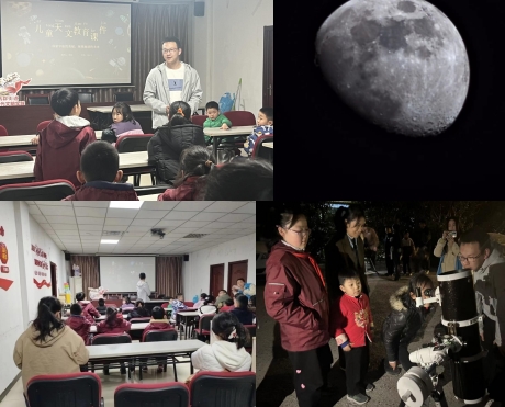 觀測(cè)月亮環(huán)節(jié)更是讓孩子們興奮不已。陳政首先向孩子們介紹了天文望遠(yuǎn)鏡的使用方法和安全注意事項(xiàng),確保每位小朋友都能在安全的前提下進(jìn)行觀測(cè)。隨后,孩子們分成三個(gè)小隊(duì),依次下樓,通過望遠(yuǎn)鏡親眼觀察到了月亮的真實(shí)面貌。他們圍在一起,驚嘆于月球的神奇與美麗,對(duì)宇宙有了更加清晰直觀的認(rèn)識(shí)。