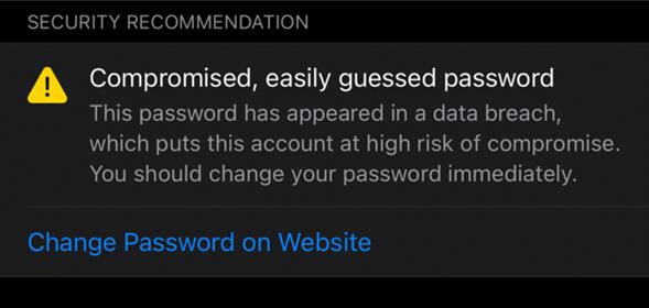 iOS 14中,蘋果進(jìn)一步對安全性升級(jí),具體來說就是,系統(tǒng)對可能會(huì)遭泄的弱密碼發(fā)出警告。