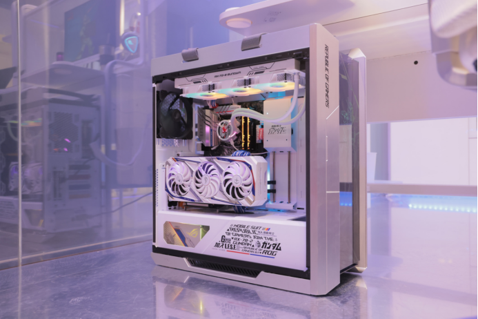 這套高達全家桶以華碩Z490主板機動戰(zhàn)士高達版為核心,搭配一系列機動戰(zhàn)士高達版機箱、顯卡、一體式水冷散熱器、電源等,帶給玩家駕駛高達般酣暢體驗。其核心華碩Z490華碩Z490主板機動戰(zhàn)士高達版采用元祖高達藍白配色,從主板包裝到主板本體、開機畫面及軟件都進行了深度定制設計,從開機畫面開始就能玩家全方位無死角地感受到機動戰(zhàn)士高達的戰(zhàn)斗激情。采用12+2供電模組搭配扎實的DrMOS,WiFi 6無線網卡,前置后置雙USB3.2 Gen2 Type-C設計,支持雷電3接針等配置,帶來超凡的性能,給予高達迷們真正的“白色惡魔機體”。