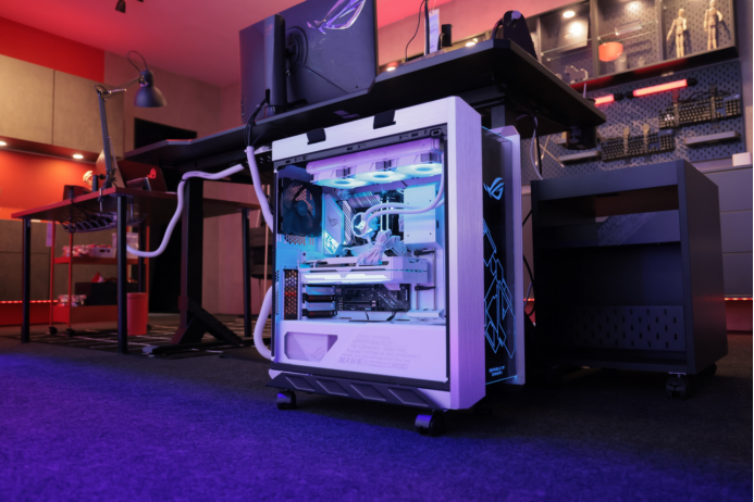 首先,在這間還原Tony大叔日常娛樂、辦公、攝影的高端電競房間中,高端豪華的電競裝備可謂應有盡有。作為整個電競空間的核心裝備——ROG全家桶更是采用了最新發(fā)布的ROG MAXIMUS XIII HERO(簡稱ROG M13H)主板,再加上ROG STRIX GeForce RTX™ 3090、ROG STRIX LC Ⅱ 280 ARGB飛龍二代一體式水冷散熱器、ROG STRIX XF120風神風扇、ROG STRIX 雷鷹1000W金牌全模組電源、ROG STRIX HELIOS太陽神機箱等高性能硬件,為玩家們帶來強悍游戲體驗。