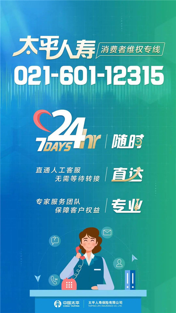 太平人壽積極暢通維權(quán)渠道,在發(fā)揮全國統(tǒng)一客服熱線95589主通道作用的同時(shí),還開通021-601-12315維權(quán)直達(dá)專線,保證熱線接通率,提升坐席人員線上處理問題能力,為廣大消費(fèi)者提供隨心、省心、安心的服務(wù)。