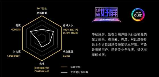 如今,用戶提起“華碩好屏”就能自然想到屏幕生產(chǎn)力的保證。為了做到這一步,從出廠起,華碩的每臺(tái)OLED筆電都需經(jīng)過(guò)逐臺(tái)校色才能通過(guò)檢驗(yàn);并且,在國(guó)際認(rèn)證上,其擁有潘通色彩認(rèn)證、TÜV萊茵硬件級(jí)低藍(lán)光認(rèn)證、VESA發(fā)布的DisplayHDR認(rèn)證等,含金量更是十足。