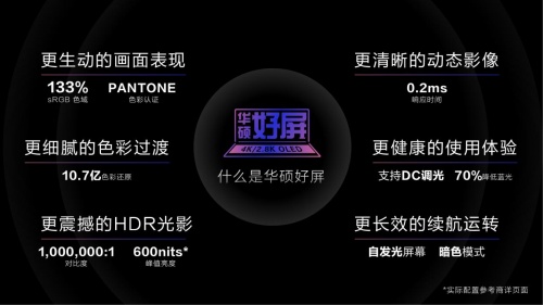 前方重點。靈耀Pro14運用2.8K OLED屏幕,16:10黃金比例,擁有100% DCI-P3廣色域、10.7億色彩顯示、1000000:1高對比度和600nits峰值亮度,并通過了PANTONE色彩認證,逐臺精準校色,精確到畫面細微之處,畫質(zhì)表現(xiàn)及屏幕觀感更佳,帶來旗艦級影音體驗,宅家一起追劇看電影,再也不擔心畫面灰蒙蒙,無法看清精彩的細節(jié)亮點。0.2ms極速響應(yīng)時間,高響應(yīng)不易卡頓,90Hz絲滑高刷,別去網(wǎng)吧啦,在家?guī)е鳷A一起上分!