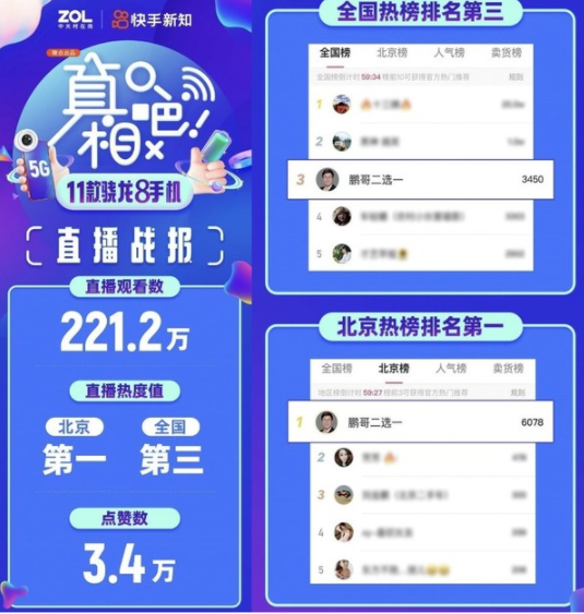 中關(guān)村在線x快手新知熱門IP欄目《真相吧》第三季:11款驍龍8手機橫評,再度嗨翻快手平臺。全面、專業(yè)、硬核的最新驍龍8手機橫向評測,極具綜藝趣味性的現(xiàn)場互動,加之貫穿全場的抽獎環(huán)節(jié),有依據(jù)、有場景的解決了消費者購機選擇困擾,成為影響百萬用戶的權(quán)威購機指導(dǎo),在直播當日黃金時段熱度值沖登全國熱榜第三、北京熱榜第一。