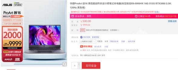 優(yōu)勢(shì):銳龍9 5900HX、RTX3060;2.5K 120Hz高刷屏;華碩旋鈕