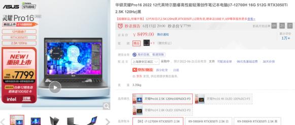 618必入!12代酷睿標(biāo)壓處理器+RTX 3050Ti獨(dú)顯 華碩靈耀Pro16 2022開售 性能猛獸!華碩靈耀Pro16 2022高性能創(chuàng)作本618首發(fā)