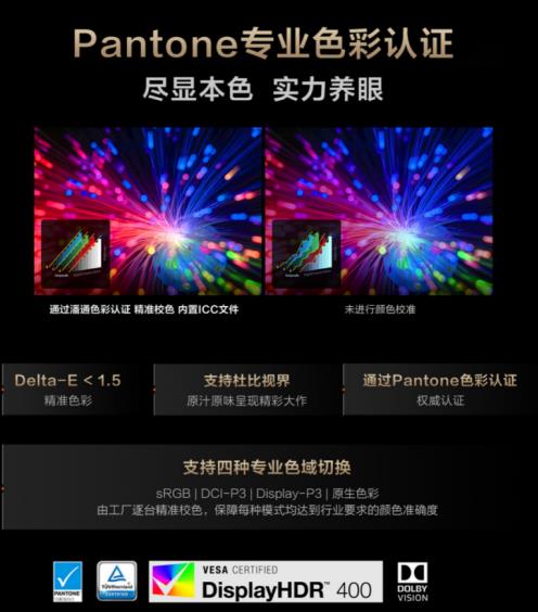 靈耀Pro16 2022的這塊擁有100% DCI-P3影院級廣色域的屏幕還內(nèi)置了定制ICC文件(平均Delta E<1.5),擁有Pantone色彩認(rèn)證、VESA DisplayHDR True Black 400認(rèn)證,讓屏幕中所呈現(xiàn)的內(nèi)容更貼近真實(shí),也為HDR視頻觀影和內(nèi)容創(chuàng)作奠定了良好基礎(chǔ)。