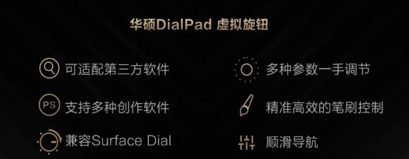 華碩獨(dú)有的DialPad虛擬旋鈕進(jìn)一步優(yōu)化迭代,為用戶提供了更加智能的創(chuàng)作體驗(yàn)。DialPad虛擬旋鈕擁有70多種功能,多種參數(shù)一手控制,多種筆刷指尖調(diào)節(jié),圖層、時(shí)間軸等功能精準(zhǔn)控制,讓創(chuàng)作工作流程將會(huì)變得更加順暢。華碩DialPad虛擬旋鈕目前可兼容多款創(chuàng)作辦公軟件,也兼容Surface Dial等輔助設(shè)備。