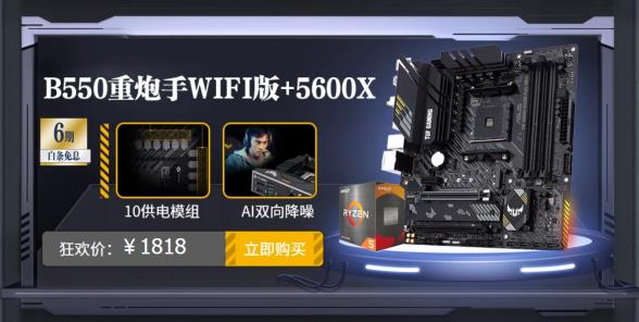 華碩B550重炮手WIFI二代搭5600X板U套裝:狂歡價1818元