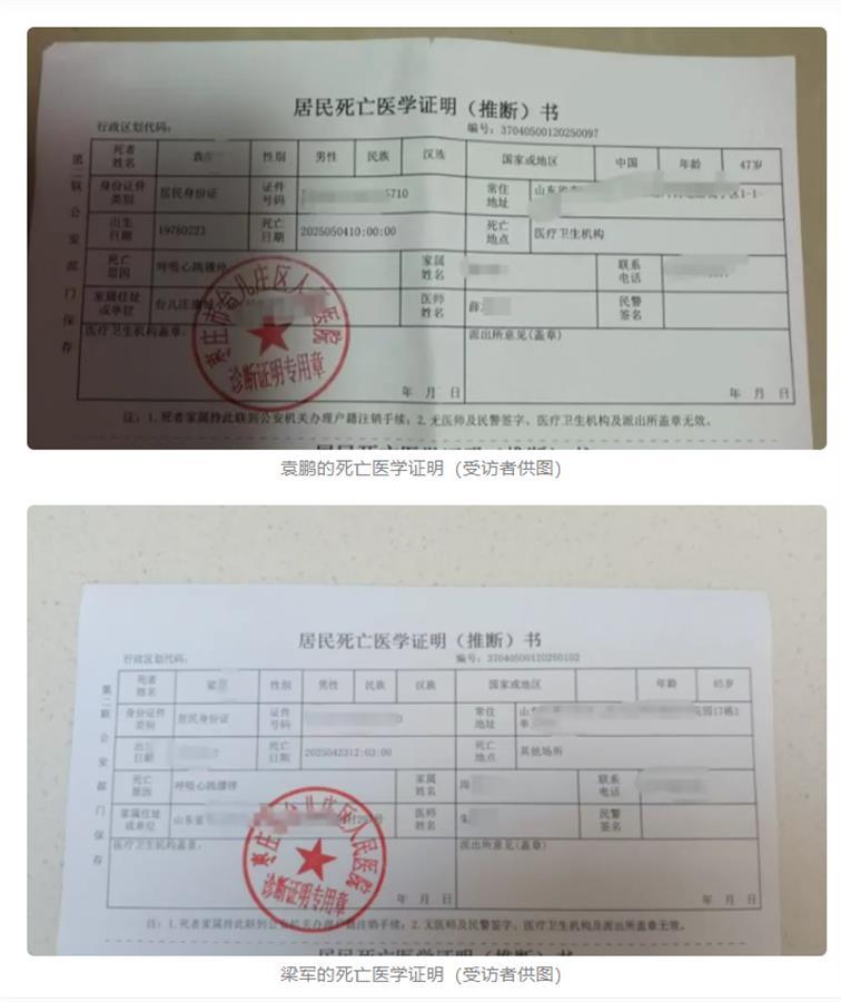 5月11日,棗莊的周麗(化名)安置好7歲的女兒,又匆忙出門(mén)去為丈夫的后事奔走。一周前的5月4日,丈夫袁鵬(化名)騎車前往餓了么長(zhǎng)安路店上班時(shí),在小區(qū)里倒下后再也沒(méi)能起來(lái)。而在10多天前,她的妹夫梁軍(化名),同樣在去這家門(mén)店上班的路上倒下了。兩人死因都是“呼吸心跳驟?!?。(據(jù)5月11日封面新聞報(bào)道)
