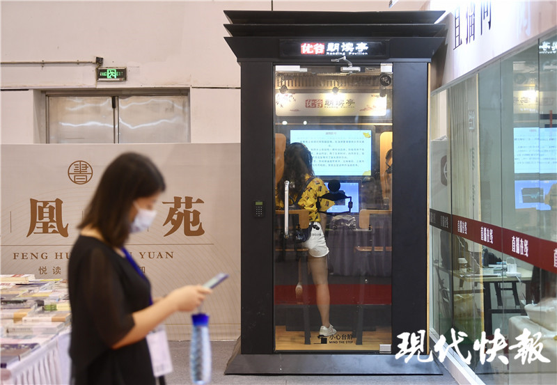 本屆江蘇書(shū)展,館內(nèi)館外,處處科技感十足。5G信號(hào)車(chē)、鳳凰AI聽(tīng)智能學(xué)習(xí)音箱、自助收銀機(jī)、朗讀亭……這些都讓書(shū)展現(xiàn)場(chǎng)魔力十足。