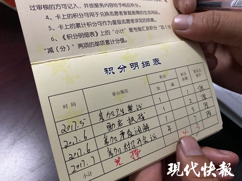 據(jù)介紹,綜治銀行成立于2016年9月,最初因村里矛盾較多,影響到了正常的工作,便通過這一方法營造文明村風。綜治銀行實行志愿者公益積分制度,將志愿者的愛心善舉以“道德資產(chǎn)”的形式進行儲蓄,“你做一件好事,我們就給你積1分。”