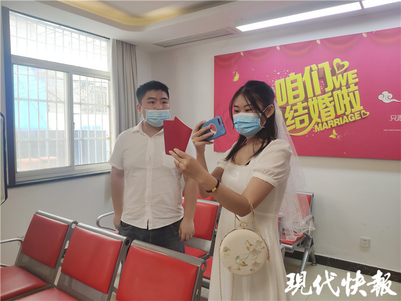 現(xiàn)代快報記者了解到,陳華是一名護(hù)士,一年前經(jīng)過朋友介紹與陶宇欣相識。“我們倆都是幽默開朗的性格,每天都有說不完的話。領(lǐng)證對我們來說很有意義,所以精心準(zhǔn)備了全套裝備。”陳華說,在她看來,婚禮更多是給家人儀式感,但領(lǐng)證是給自己的儀式感。“在來領(lǐng)證的路上,一些路人看到我?guī)е^紗,也向我們表達(dá)了祝福,我感覺這比婚禮儀式更溫馨,更難忘。”