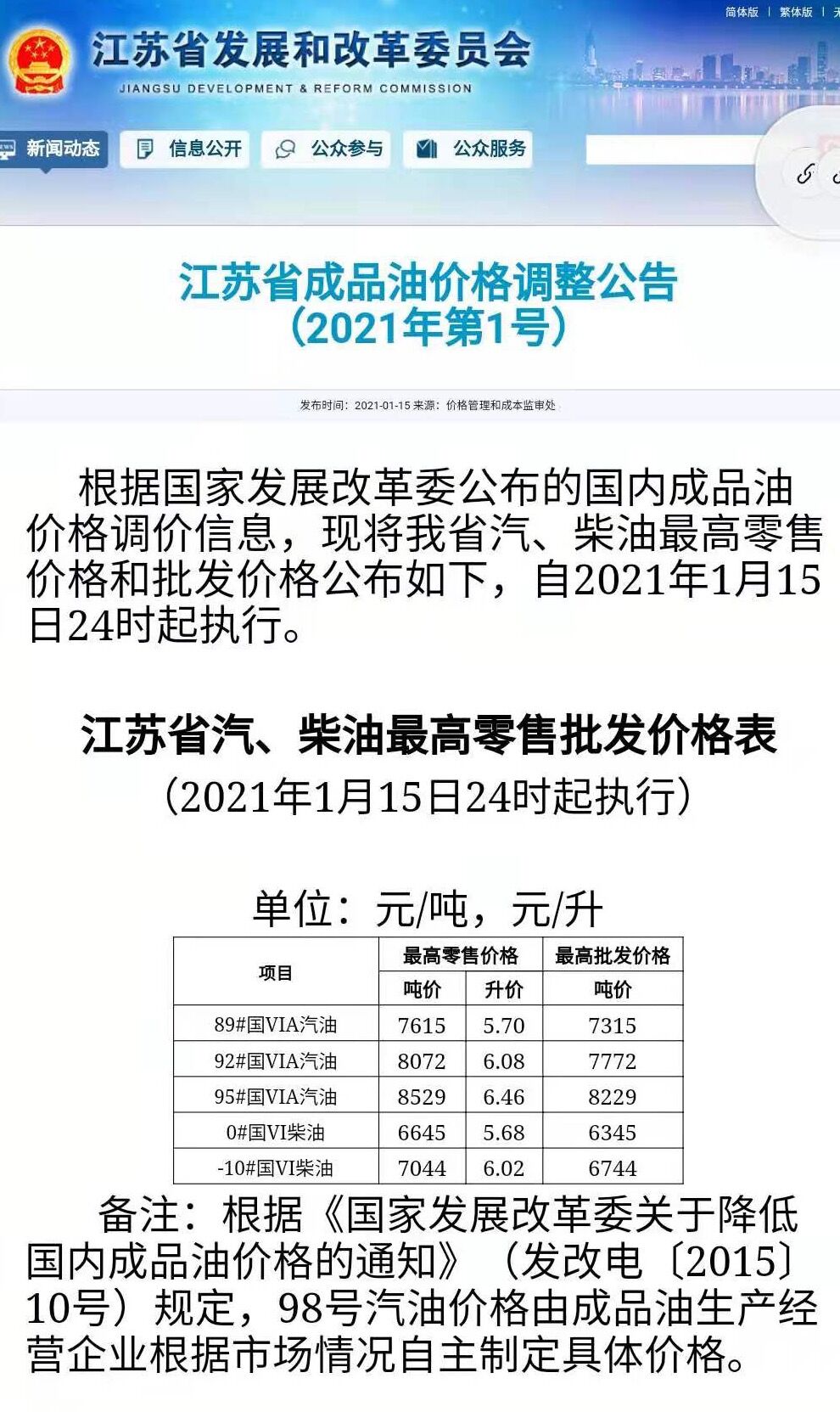 (實習生 黃鈺曄 記者 張瑜)國內(nèi)成品油零售限價迎來2021年首次上調(diào)!1月15日,國家統(tǒng)計局發(fā)布成品油調(diào)價通知,根據(jù)近期國際市場油價變化情況,按照現(xiàn)行成品油價格形成機制,自2021年1月15日24時起,國內(nèi)汽、柴油價格每噸分別提高185元和180元。現(xiàn)代快報記者從江蘇省發(fā)改委獲悉,這次調(diào)價后江蘇92號汽油上漲至6.08元/升,重回“6元時代”。