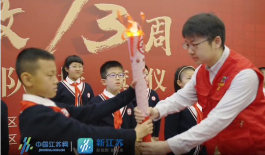 “請(qǐng)黨放心,強(qiáng)國(guó)有我。”活動(dòng)現(xiàn)場(chǎng),江北新區(qū)浦廠小學(xué)的學(xué)生高聲朗誦《七律•人民解放軍占領(lǐng)南京》并進(jìn)行“紅色精神代代傳”火炬?zhèn)鬟f儀式。