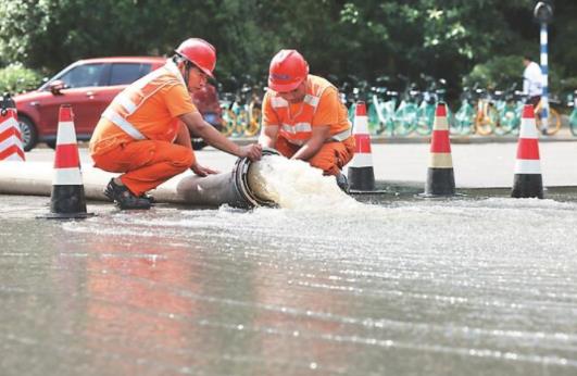 二十四日,南京市鼓樓區(qū)水務局工作人員在集賢路操作排水泵車清除積水,恢復道路正常通行。記者 陳儼 攝