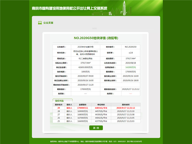 南京6幅地塊順利成交 3幅觸頂最高限價(jià)將搖號(hào)確定花落誰家